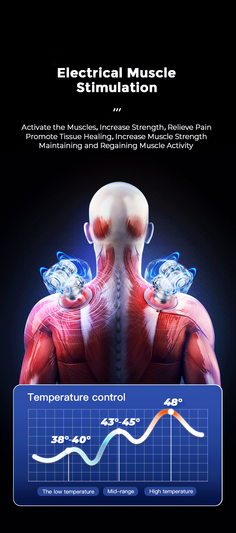 via Modern Technological Innovation of EMS, TENS, red light therapy, heat therapy and topical